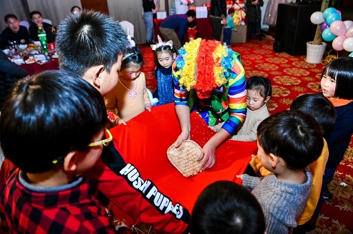 現(xiàn)場(chǎng)寶寶們期待的估計(jì)就是小丑先生的魔術(shù)表演了。眼花繚亂間突然飛出來的爆米花,不經(jīng)意間突然不見了紙幣,摸了一把突然就著火的布片,孩子們的歡呼聲就沒斷過。