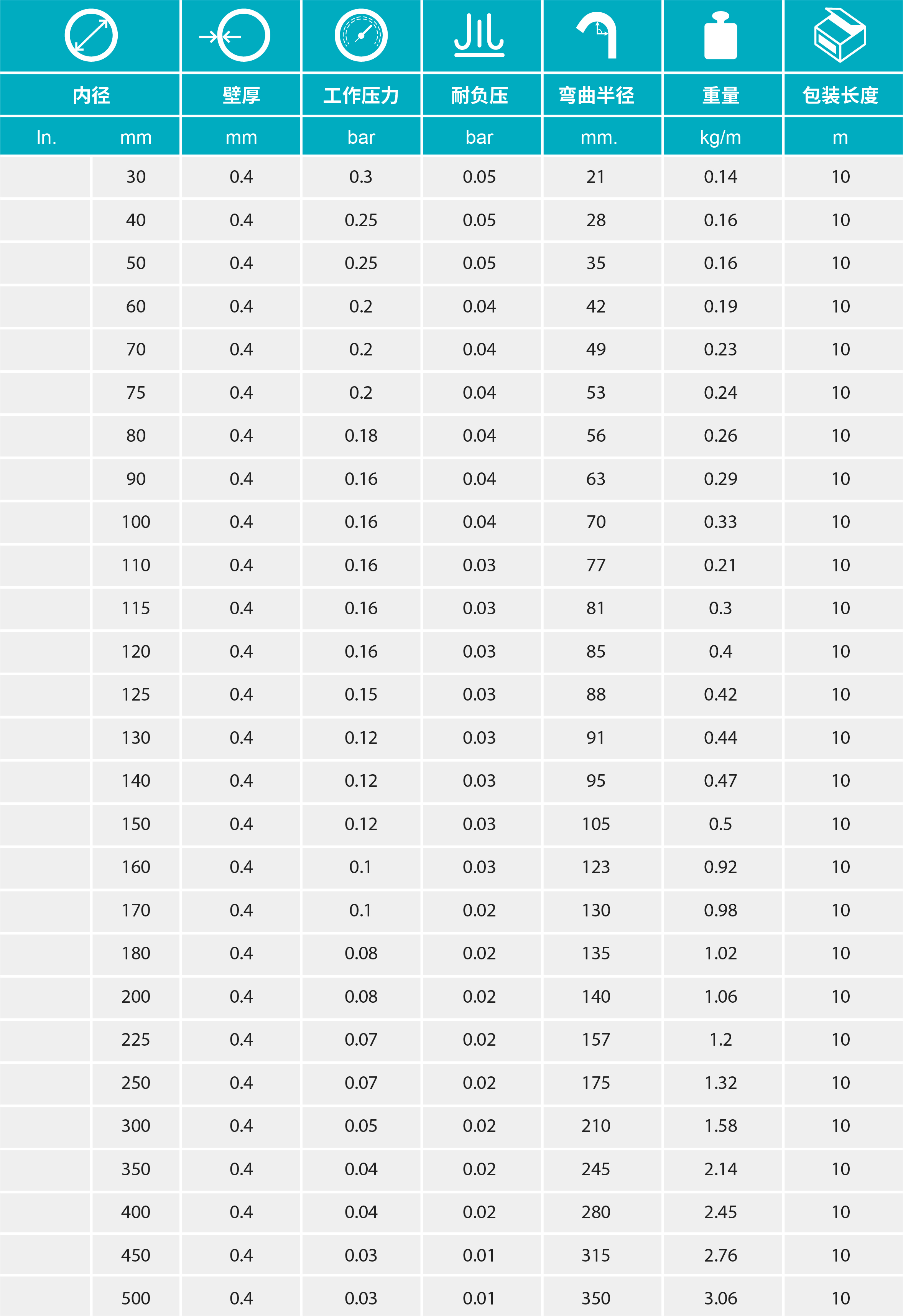• 輕質(zhì)柔性管壁Hytrel?螺旋鋼絲增強(qiáng),螺旋鋼絲接地導(dǎo)靜電