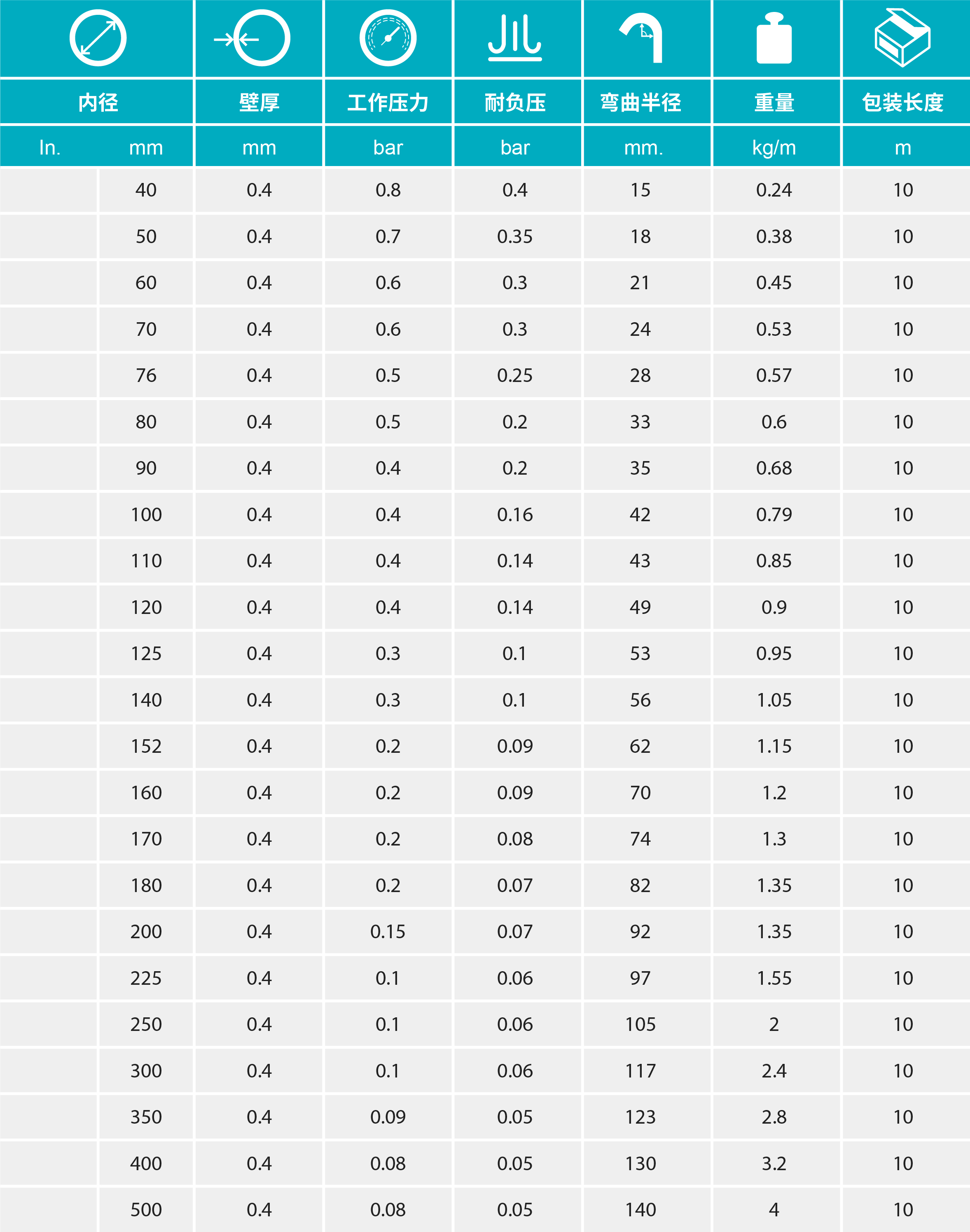 - 質(zhì)極輕且極其柔軟,內(nèi)壁平滑以保證物料在管內(nèi)流動(dòng)順暢