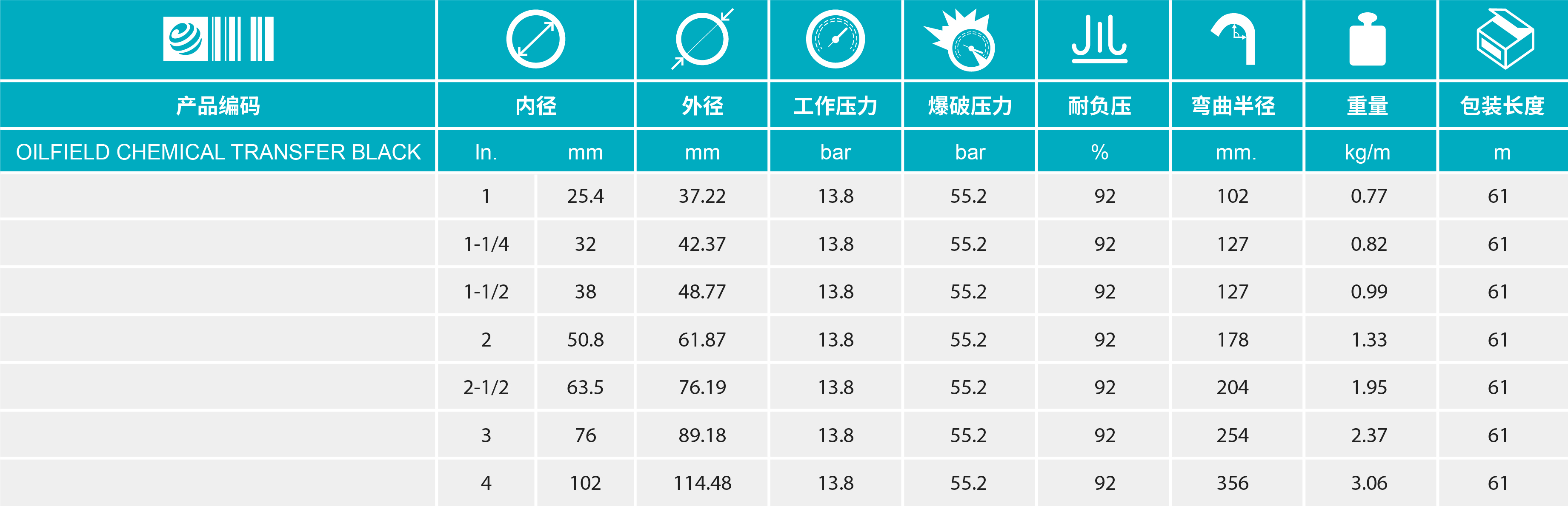 • 增強層:螺旋纖維編織,并帶有螺旋鋼絲