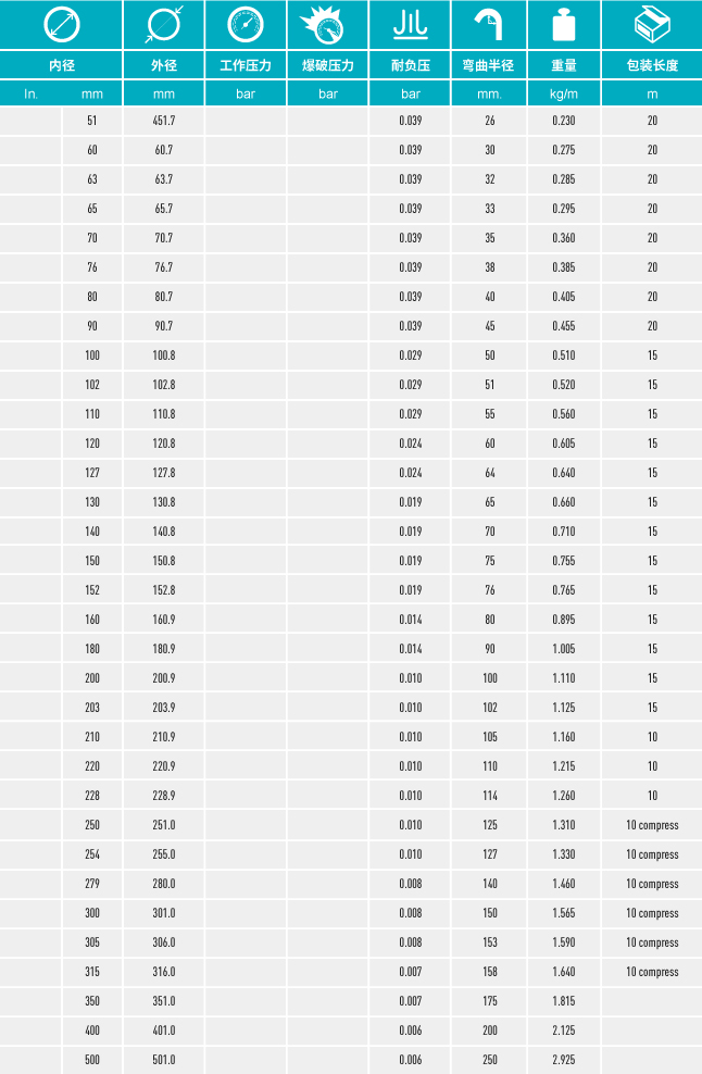 • 極其柔韌,可軸向壓縮(約5:1),易于搬運(yùn),益于倉儲及運(yùn)輸成本