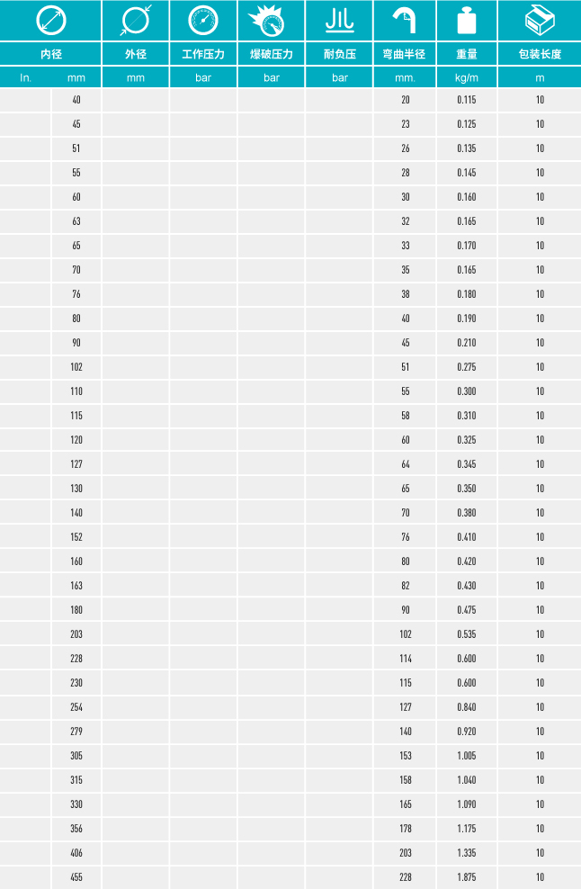 - 聚酯織物覆阻燃PVC涂層,由焊接在兩層之間的螺旋鋼絲加強(qiáng)