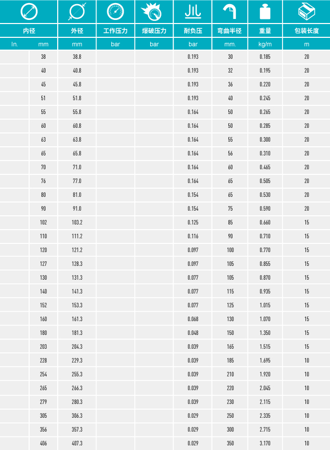 由熱塑性橡膠制成的柔性管,在兩層之間嵌有鋼制螺旋加強