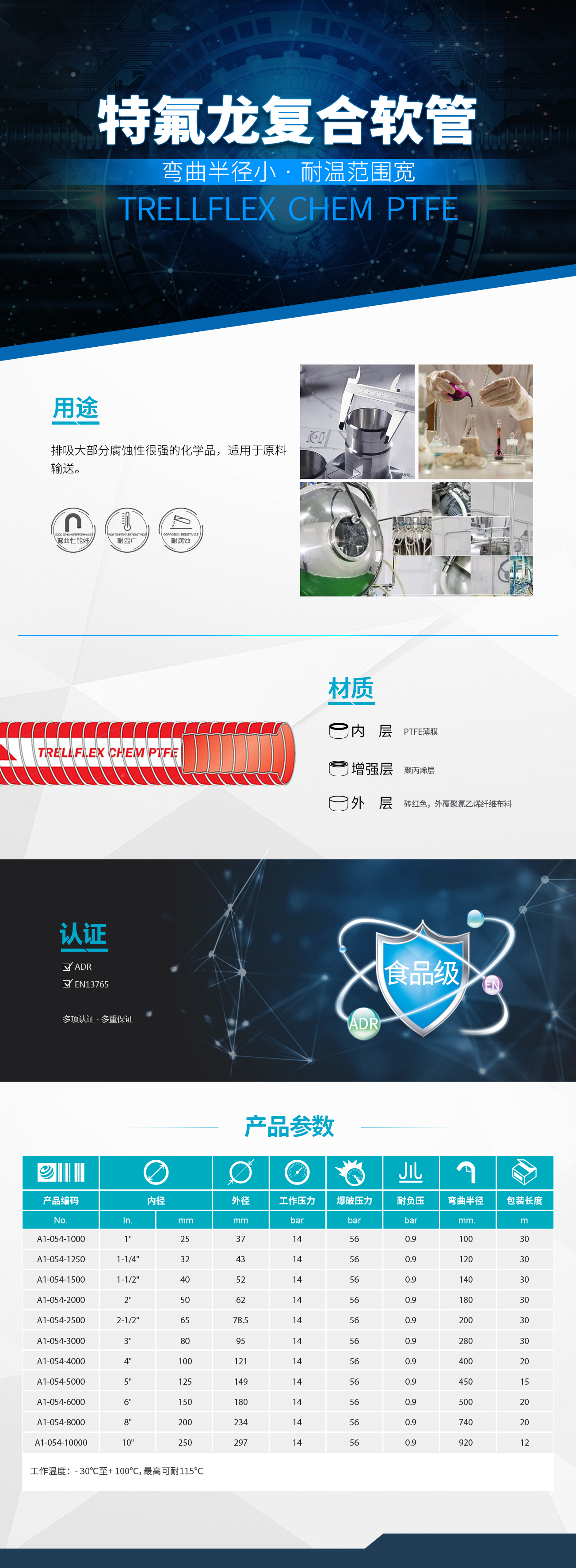 4. 特氟龍復(fù)合軟管 TRELLFLEX CHEM PTFE 14 (SGT/SST)