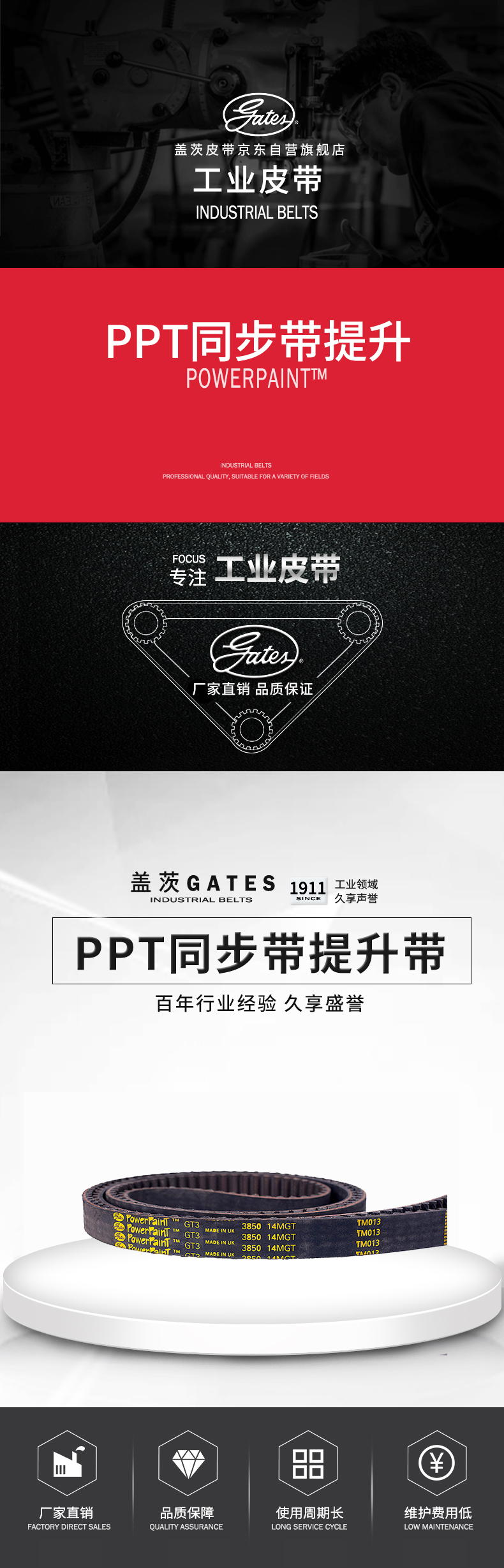 4. 蓋茨GATES同步帶提升帶PowerPaint橡膠傳動帶PPT GT3 3500 14MGT