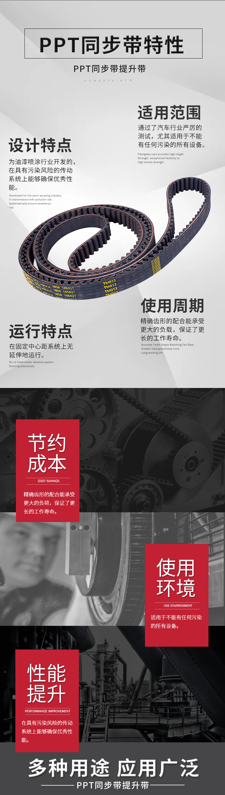 • 為油漆噴涂行業(yè)開發(fā),在具有污染風險的傳動系統(tǒng)上能有較好的性能表現(xiàn)。
