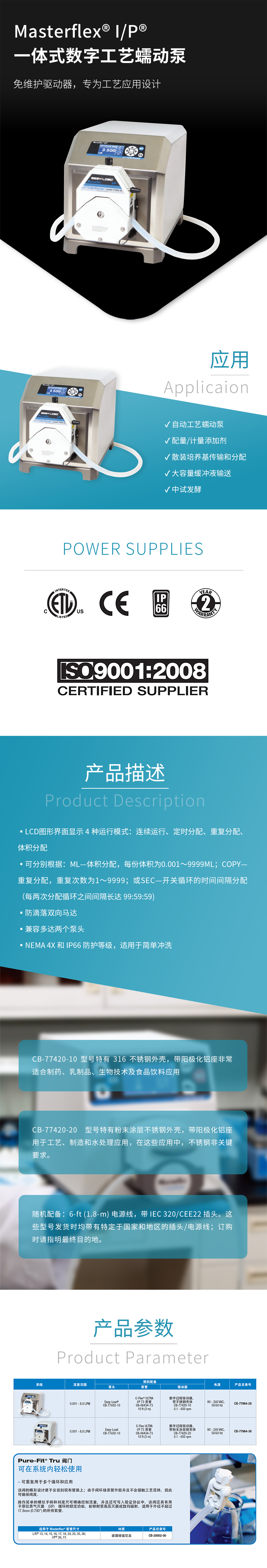 Masterflex I/P 一體式數(shù)字工藝蠕動泵