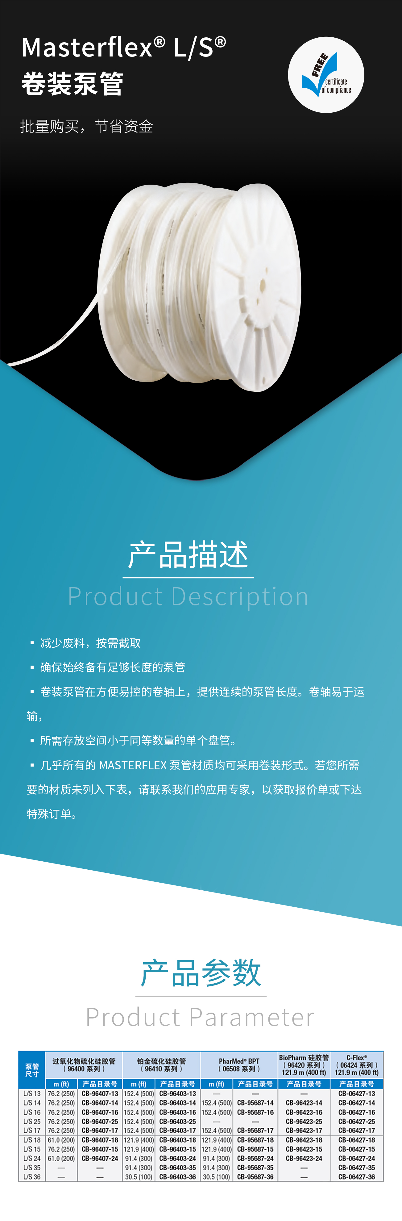 Masterflex L/S 卷裝泵管