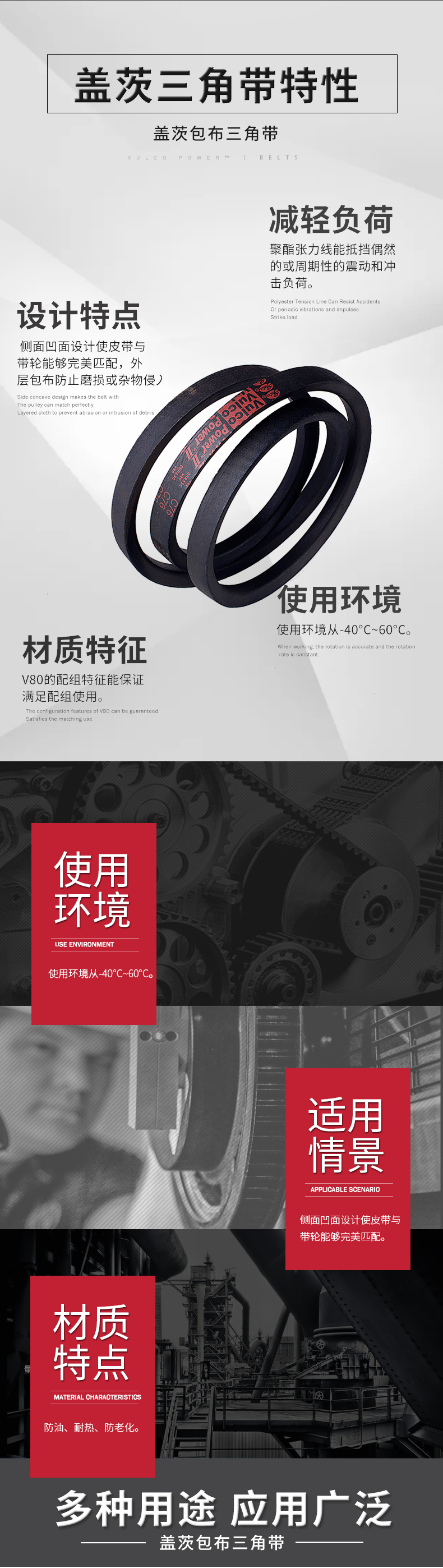 • 側(cè)面凹面設(shè)計(jì)使皮帶與帶輪能夠更好匹配,外層包布防止磨損或雜物侵入。