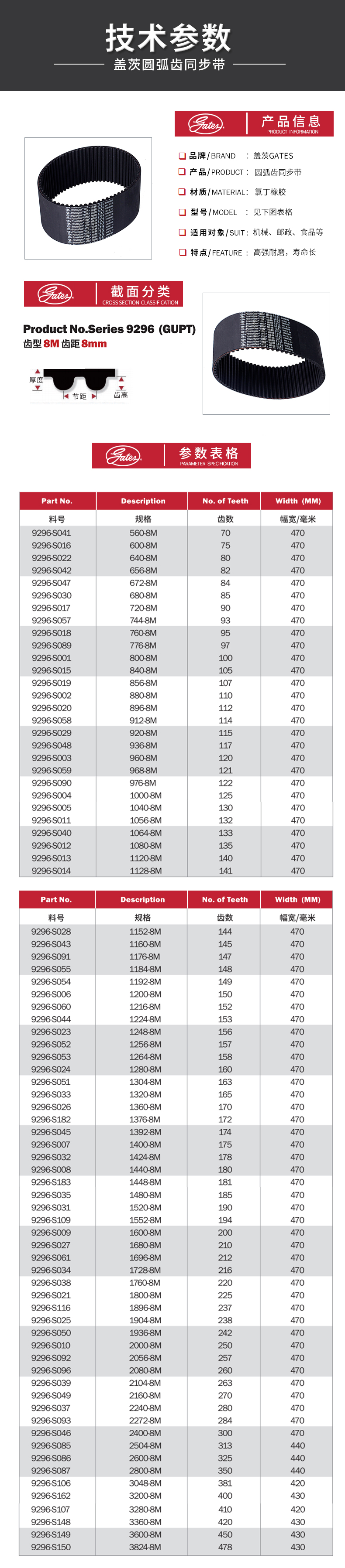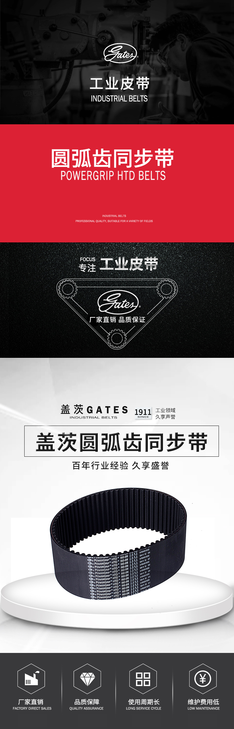 4. 蓋茨圓弧齒同步帶 PowerGrip HTD 橡膠傳動(dòng)帶 工業(yè)皮帶 1800-8M