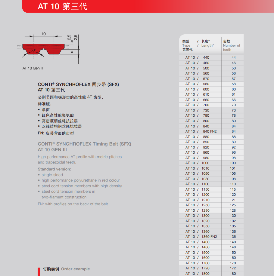 - 德國(guó)馬牌Continental 工業(yè)皮帶 聚氨酯同步帶 SYNCHROFLEX AT10 III 第三代