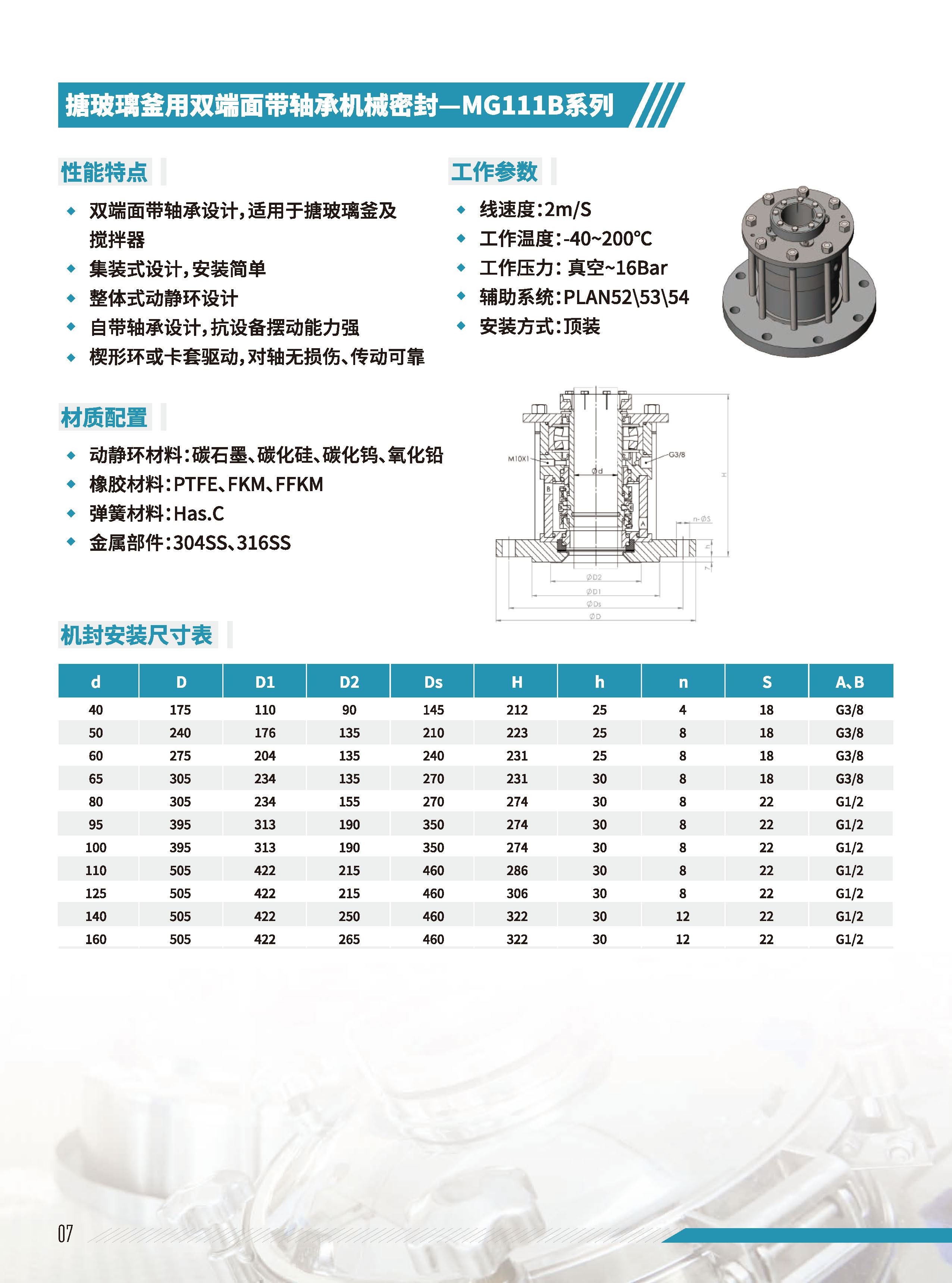 4. 搪玻璃釜用雙端面帶軸承機(jī)封MG111B系列