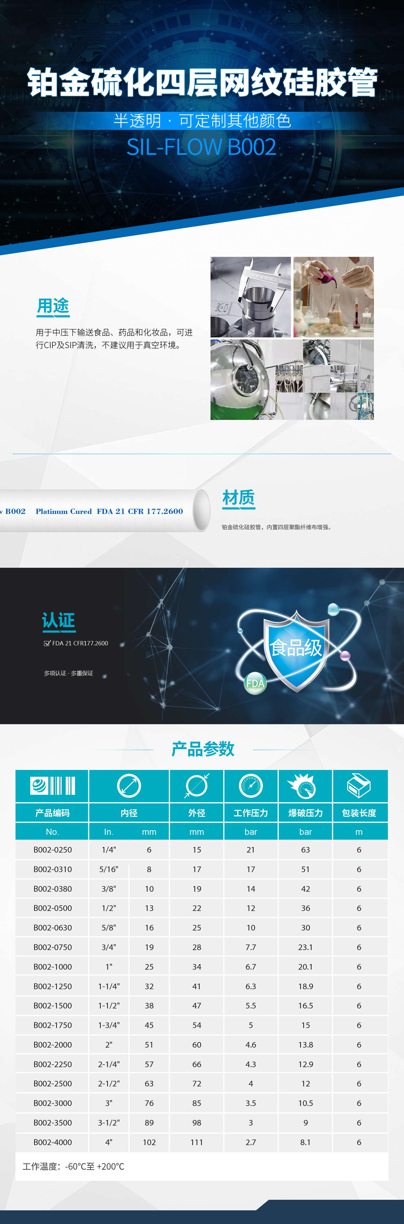 4. 鉑金硫化四層網(wǎng)紋硅膠管 Sil-Flow B002