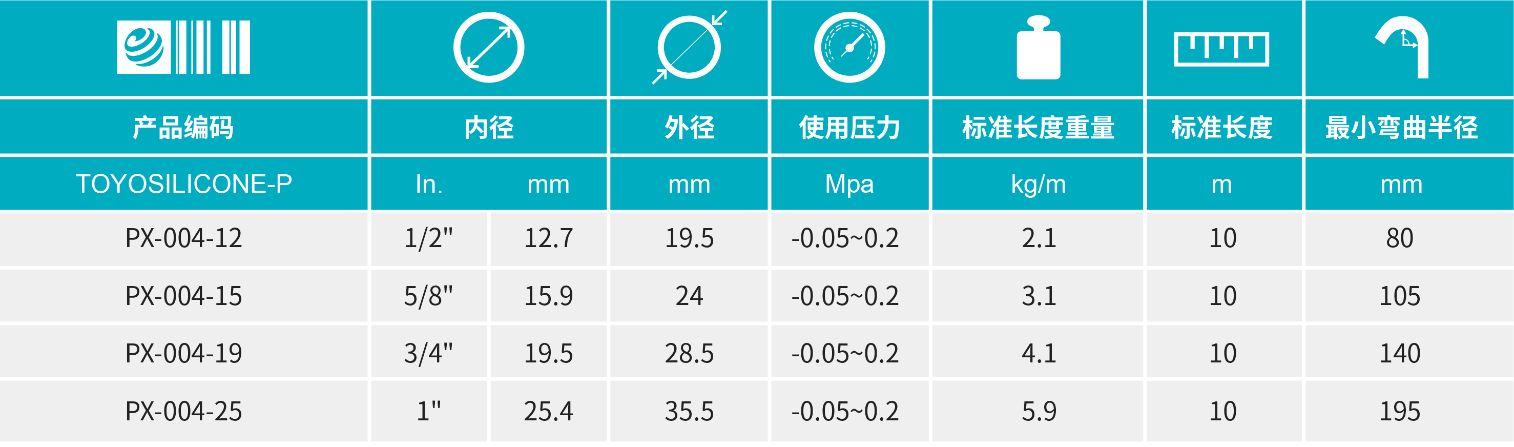 • 硅橡膠制的壓送、真空輸送兩用耐壓膠管,能充分發(fā)揮硅材料在100℃以內(nèi)的耐熱特性、低溶出性、絕緣性及無臭等特性,可用于食品/飲料行業(yè)、半導(dǎo)體行業(yè)及工業(yè)爐行業(yè)等的設(shè)備膠管配管。 帶有特殊PET樹脂線圈,與TOYOSILICONE-S相比,可杜絕生銹的困擾,并且柔軟度更高,適合用于狹窄場所的配管。有各種專用接頭,可實(shí)現(xiàn)更高的生產(chǎn)效率??捎米鳎汗S設(shè)備機(jī)械的配管用膠管(填充機(jī)、冷卻裝置、耐熱用配管等)。