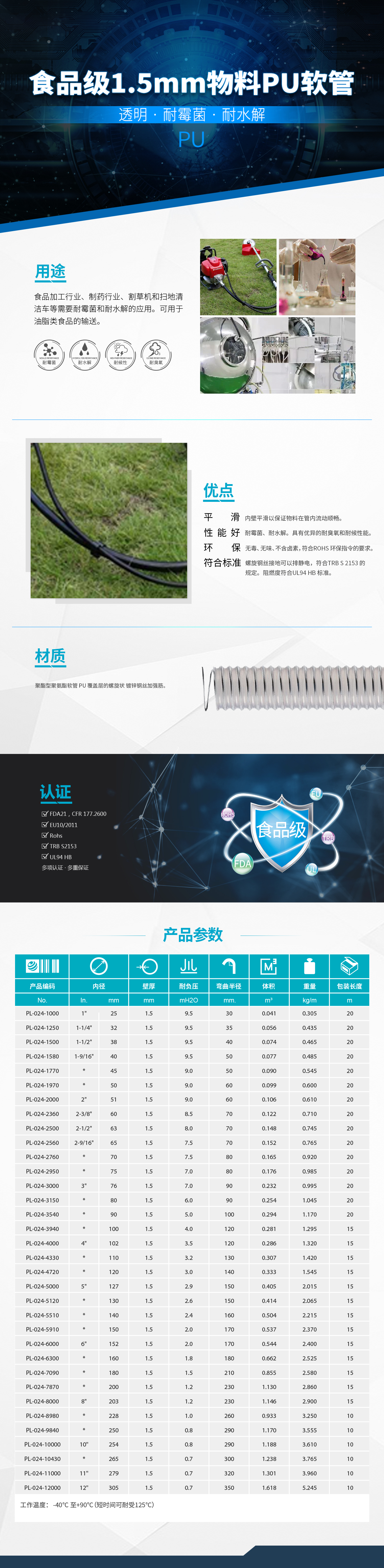 - 1.5mm壁厚-鋼絲加強(qiáng)透明PU軟管【食品級(jí)】 VI