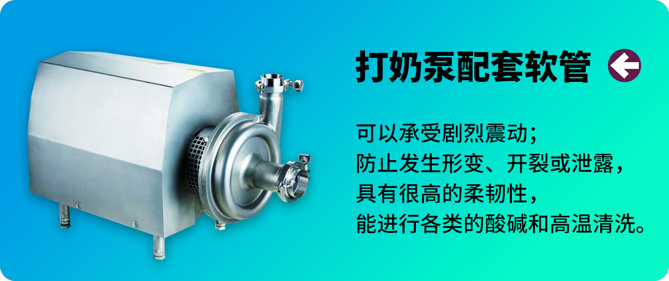 奶臺(tái)卸奶,衛(wèi)生級(jí)泵的前后端減震,儲(chǔ)罐轉(zhuǎn)運(yùn),車間清洗等,針對(duì)液態(tài)奶、冷飲、奶粉等產(chǎn)品加工過程,我們提供專業(yè)的軟管配套方案。