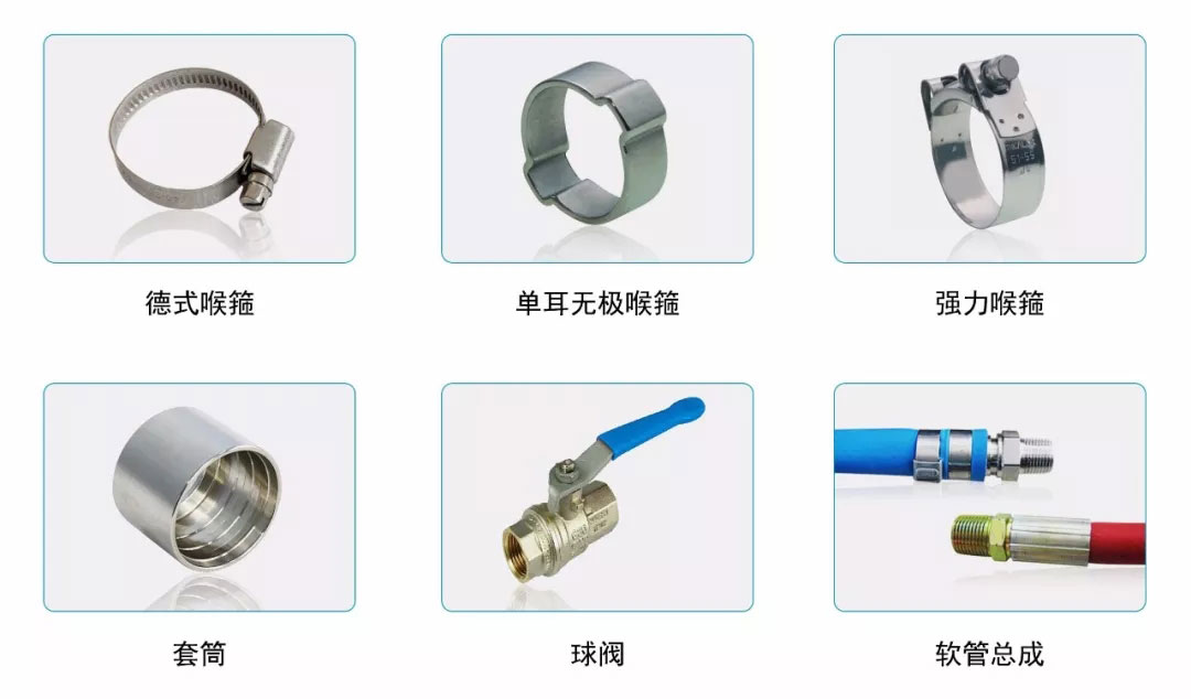 有了好的軟管和接頭,剩下的就是將它們緊固連接了。依然放心的交給我們吧,我們提供全面的接頭緊固方案,無論是喉箍、卡箍、扣壓、扎帶、兩片式卡箍緊固,均有安全可靠的產(chǎn)品方案提供。