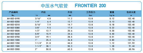 A4-002 中壓水氣軟管 FRONTIER200