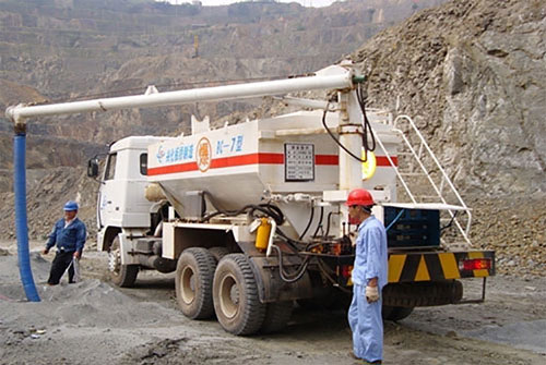 混裝車(chē)全名“現(xiàn)場(chǎng)混裝炸藥車(chē)”,是一種能將乳化炸藥原料分倉(cāng)儲(chǔ)運(yùn)并在爆破現(xiàn)場(chǎng)混制裝填的多功能車(chē)輛,在礦山、冶金、建材等行業(yè)有廣泛應(yīng)用。輸藥管正是用于將乳化炸藥從螺桿泵輸送到炮孔的連接軟管。